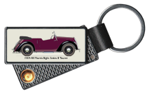 Rectangular leather keyring with metal fob, printed with the side elevation of the vehicle. |