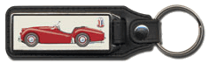 Rectangular leather keyring with metal fob, printed with the side elevation of the vehicle. |